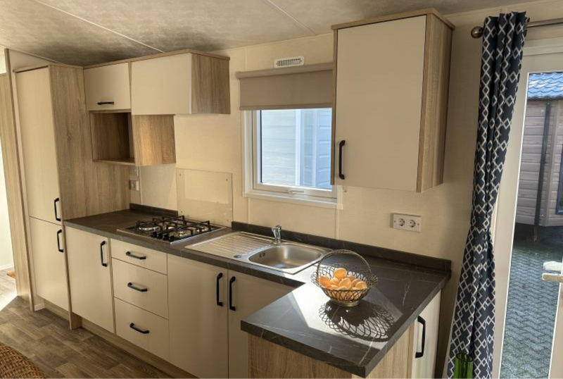 - Mueble de baño de lujo con armarios y grifería monomando.