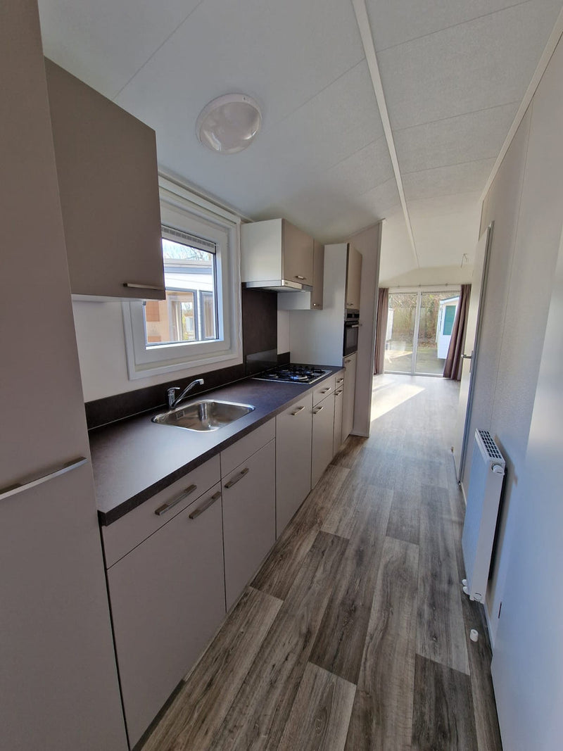 Marcos de plástico para puertas y ventanas, doble acristalamiento H++, rejillas de ventilación en las ventanas Unidad de cocina con muebles altos