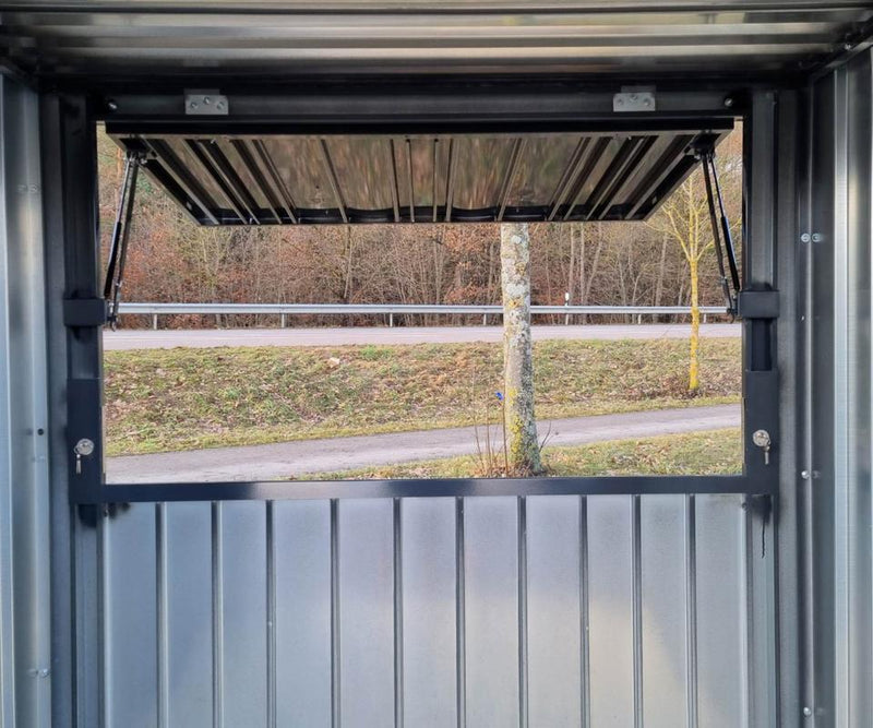 La trampilla de venta del contenedor está asegurada con dos cerraduras de cilindro a cada lado.
