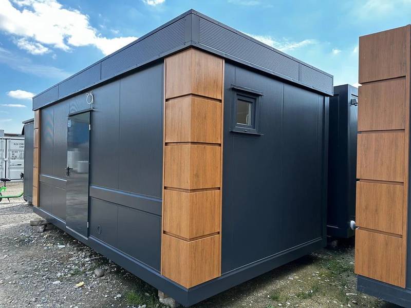 Características: 1 puerta, 2 ventanas, opciones de personalización (ducha, caldera, split)